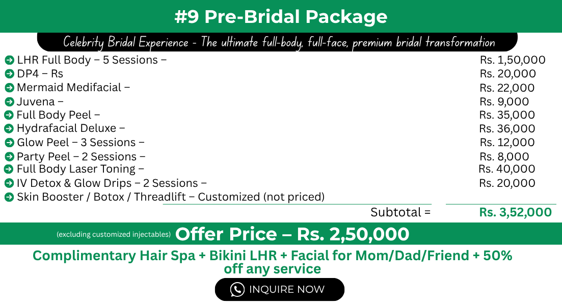 Let’s plan your perfect bridal glow, together. Call us or visit the clinic for a detailed consultation, and we’ll recommend the best bridal package based on your skin, hair, and schedule.